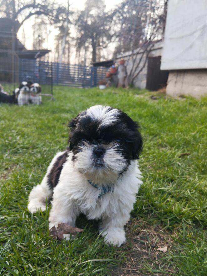 Szczeniaki shih tzu zroglądają się za domem. Do odbioru bedą na początku kwietnia.Powiadom o podobnych ogłoszeniach